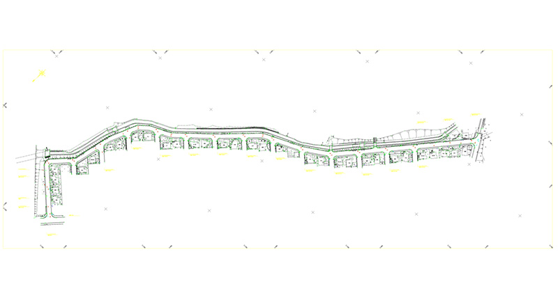 The project involved surveying many vertically aligned structures with highest accuracy to create a 1/500-scale plan of the existing conditions, including elevation of observation points, and a 1/100-scale cross-sectional plan.