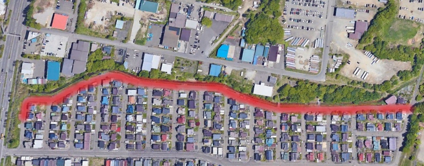 The team was recently contracted by Kitahiroshima City to survey a 700-metre residential road as part of a reconstruction project. The scope of work included surveying the road's existing conditions and 29 cross-sections to gather data for the redesign.