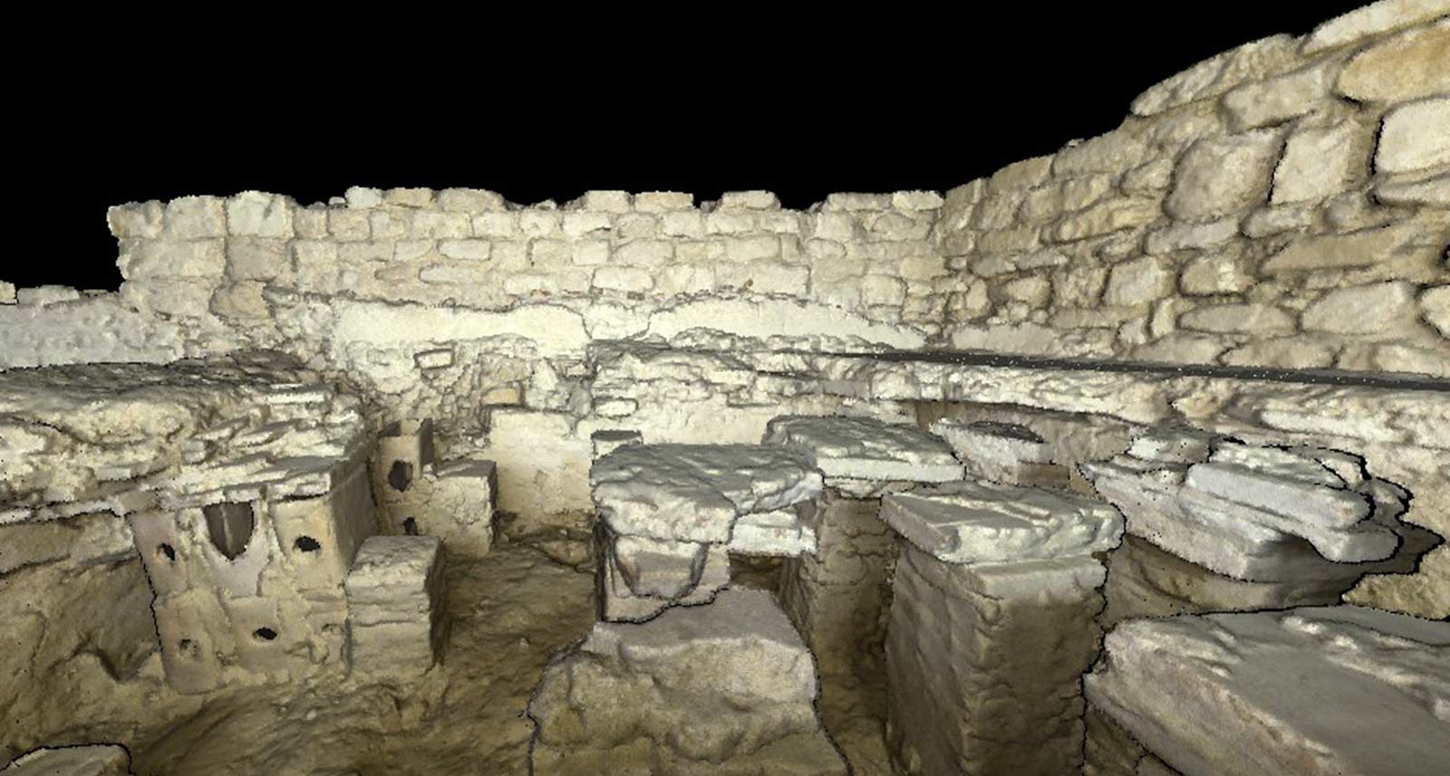 Once the field work was complete, the ABSCISA 3D team used Cyclone software for final point cloud registration and export to Cyclone 3DR. They then created the final deliverables, including a Digital Elevation Model (DEM). She explains, “The point cloud is the starting point for subsequent work, orthophotography, mapping, MDS, point cloud comparison of various work campaigns. Archaeologists need the DEM to know the heights of existing walls relative to mosaic and natural terrain, as well as the slope of the terrain. They study it and make the interpretations.”