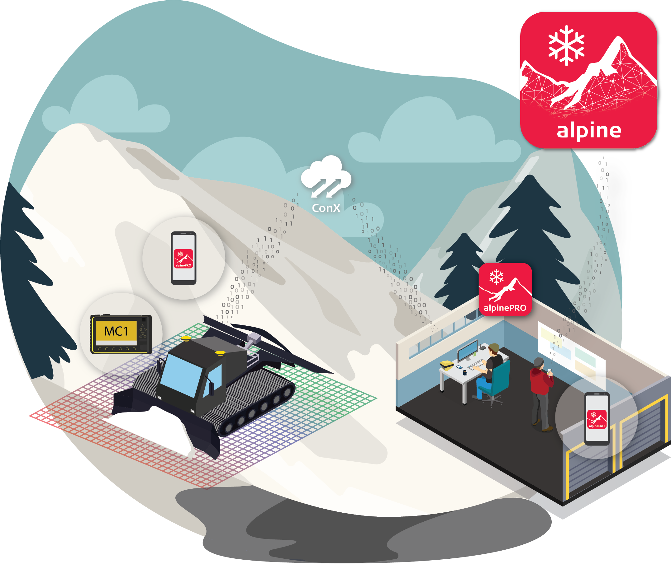 The Leica iCON alpine snow management is a comprehensive suite of tools including the 3D snow measurement solution that delivers real-time data on the in-cabin display showing exact snow depths under the blade. This enables the operator to respond to snow conditions immediately and perfectly prepare slopes according to a 3D reference model. With the web-based geo-information system alpinePRO you can expand your solution to a complete management system for your entire resort infrastructure with comprehensive analysis, assessment and planning functions.