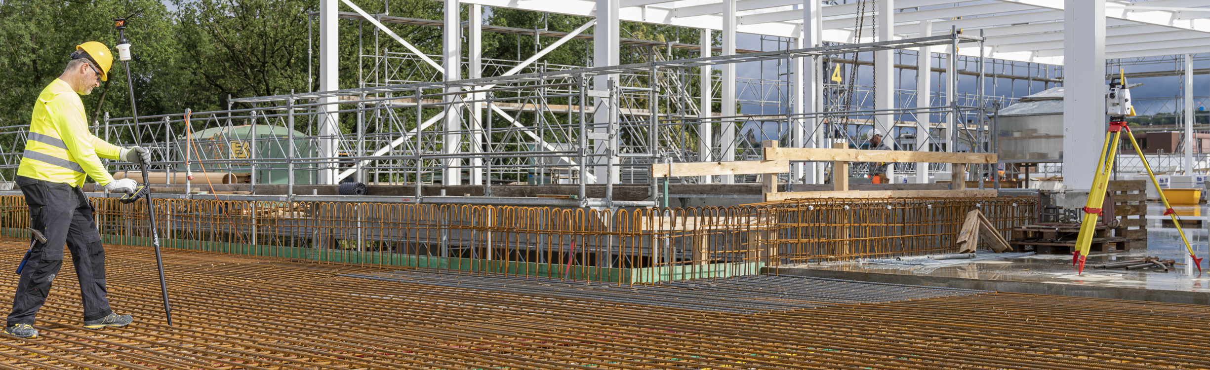 The ability to measure with a tilted pole also has many applications. For example, when working on uneven surfaces, such as laying out on a pan deck or measuring volumes on a stockpile, you can measure faster without levelling and stabilising at every point. Additionally, you can measure more difficult positions, like concrete column edges or utility pipes in a trench. Accuracy is always visible in the field software, and you can set tolerances to ensure you maintain your standards.